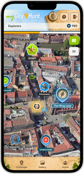 De mysterieuze kaart is jullie belangrijkste leidraad. Deze zit vol symbolen en afbeeldingen die vast iets te maken hebben met de verstopplaats. Begin jullie schattenjacht in Pisa bij het startpunt om meer te leren over dit oude document. Eenmaal daar duiken jullie met jullie smartphones de virtuele avonturenwereld in. De speurtocht leidt jullie door de echte straten van de stad, waarbij jullie voor verschillende uitdagingen komen te staan.